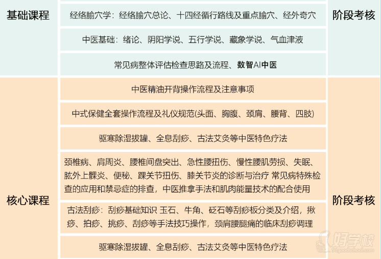 中医推拿康复理疗班专为打造优秀的中医推拿技能人才,课程设计上贴合市场,注重手法实操。课程设置不仅包含中医经络腧穴学、中医推拿手法学、人体解剖学等基础知识,还包含全套中式保健流程、中医精油开背、耳穴、拔罐、刮痧、艾灸、足部反射区疗法、颈、肩、腰、腿等常见疾病的诊断和手法治疗。课程设计上不仅具备丰富的专业知识,更增加了按摩礼仪课程,创业营销课程,特邀专家授课,立志打造出专业的中医推拿按摩复合型人才。