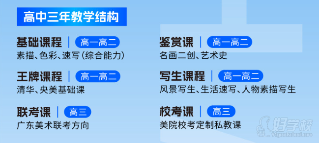 深圳艺启创想教育高中美术课程,以升学为导向,构建分层递进的三年教学体系。