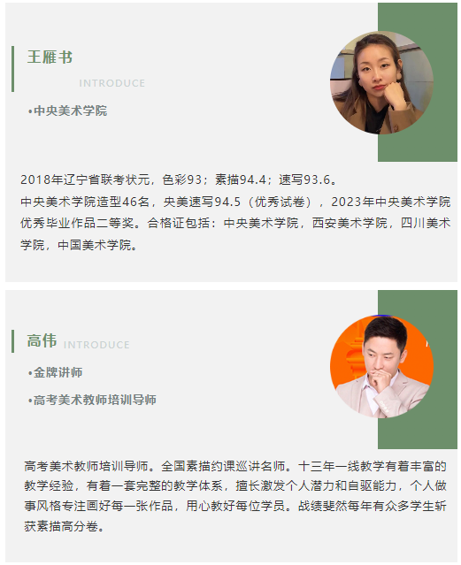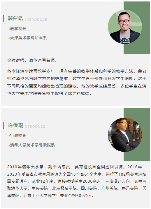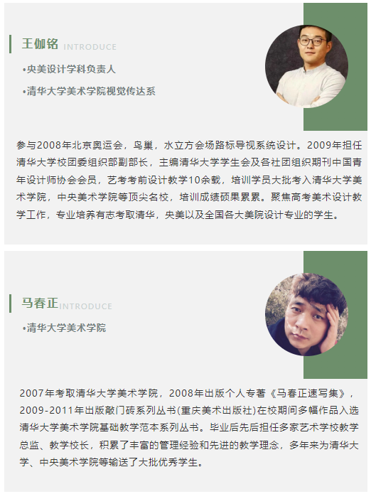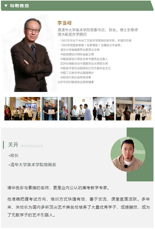 中影人教育美术专业教学团队全部来自清美、央美等名校,有十年以上艺考教学经验,教学经验丰富。中影人教育美术专业由原清华美院院长李当岐教授担任教学顾问,参与现场指导教学;由清木画室校长、05级清华大学美术学院全国造型名师、全国清华色彩名师、清华素描名师、业内公认美考教育专家关升老师以及清木画室教学校长、清华速写名师裴建皓老师领衔教学。