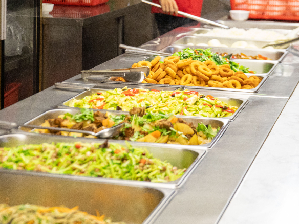 餐厅每一餐菜品都不重样,不论是主食,还是粗粮、水果、小吃、大荤、小荤、蔬菜,荤素搭配,营养均衡。满足味蕾的同时与“不健康”说拜拜~