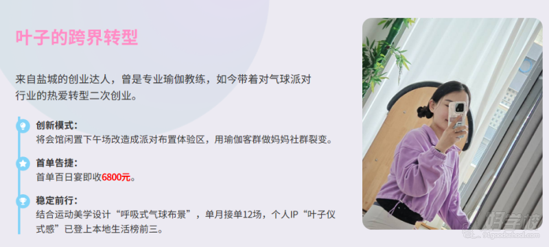 半糖派对商学院开创了新的派对培训模式,注重以学员的盈利为宗旨,多对一带着学员从零开始创业。从前期选址、推广、开业活动到谈单、接单、拓客、异业合作等,学校都将提供可落地的策划方案及方法。并及时复盘调整,以保学员可以拿到结果。