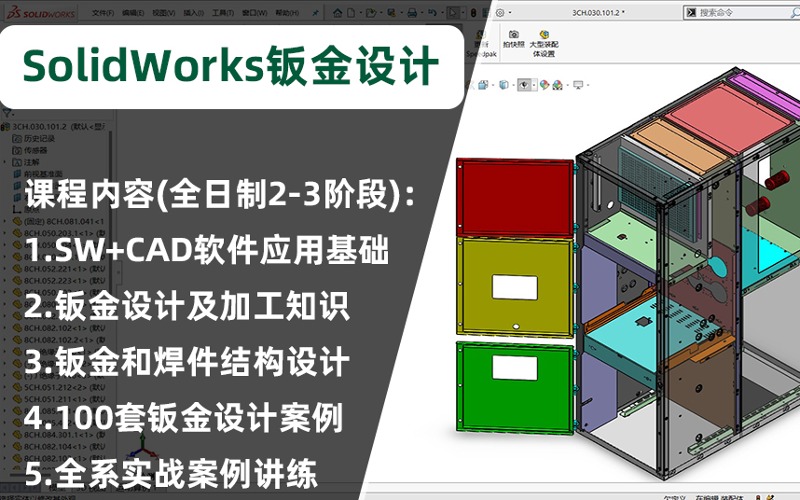 系统的学习SOLIDWORKS钣金设计,系统学习Solidworks软件应用,AutoCAD软件应用,钣金设计专业知识,成型工艺知识,制造加工知识,焊件机架设计知识,型材知识,