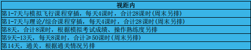 第1-7天与模拟飞行课程穿插,每天4课时,合计28课时(周末另排)