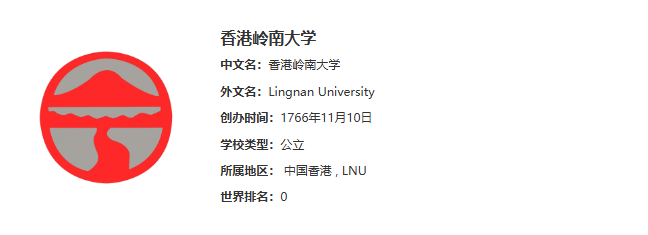 香港岭南大学,简称岭大,位于香港屯门虎地,是香港一所公立博雅大学,以传承博雅教育传统及发展优质教学为目标。大学于2012年正式加入世界博雅学府联盟,并于2014年成为香港首间为本科生提供四年全宿的大学,而学生交流机会逾六成,每三名学生中就有两名可以往外地交流一个学期,致力实践博雅教育理念,岭南大学于2015年获福布斯评选为亚洲十大博雅学府之一。根据QS世界大学排名,岭大于2014年QS亚洲大学排名中位列128名;学术排名方面,人文艺术位列全球212名,哲学位列全球101-150名,而现代语文位列全球151-200名。