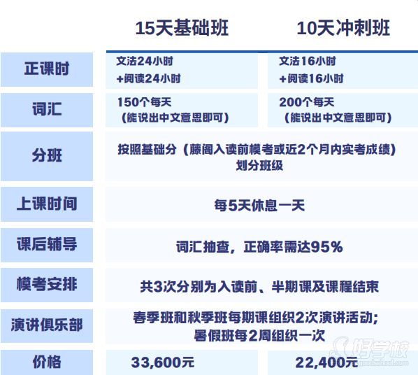 2.课程设置不同:除其他机构有的正常课程,增设每日精读精听课程(10-12 点,13:30-16 点),内容涉及语法、词汇、阅读、听力,用于夯实学生基本功