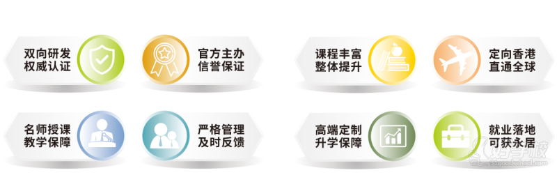 该课程得到香港学术及职业资历评审局HKCAAVO和英国考试局的认证,学生通过一年半课程的学习,可以衔接到香港以及海外超过200所大学,是内地学子衔接香港及海外学府的黄金跳板。