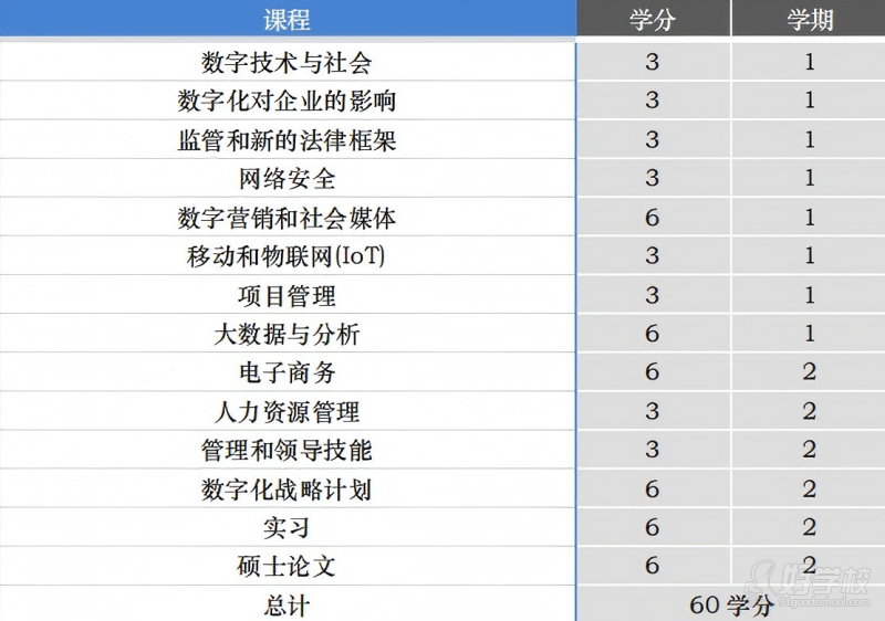 学分总量:60 学分
