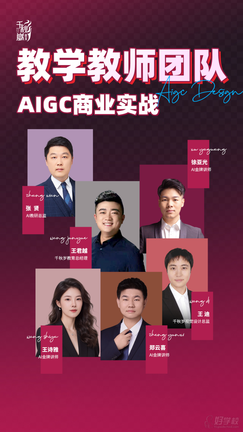 王君越(千秋岁教育总经理):10年+影视后期经验,主导200+项目,擅长AIGC商业应用。