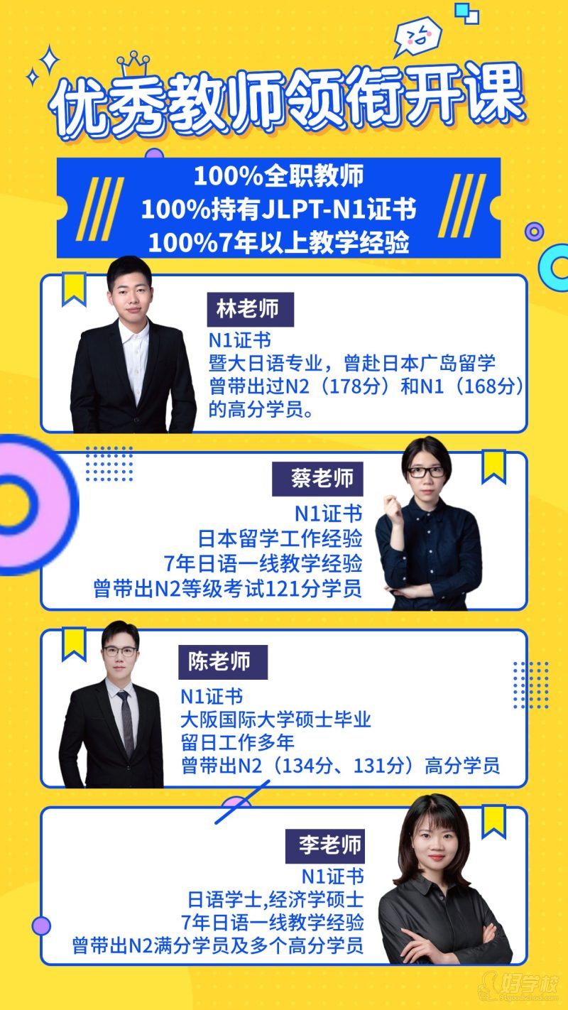 2、考前冲刺:全面提高日语听说读写能力水平,直通日本留学,达到日语JLPT中级水平,熟练掌握5000-6000词汇量。