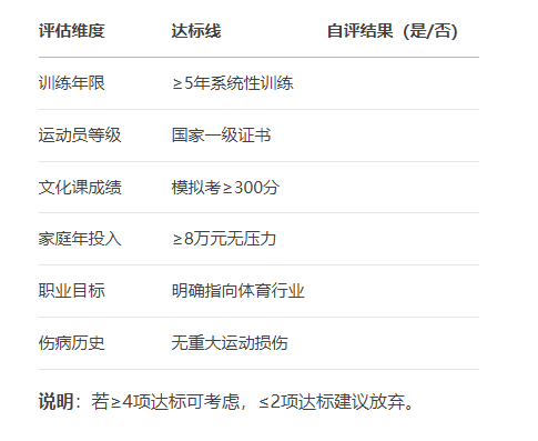 典型案例:李同学,国家一级游泳运动员,文化课350分,父亲为体校教练,从小参与全国青年锦标赛,目标进入省队——此为适配群体。